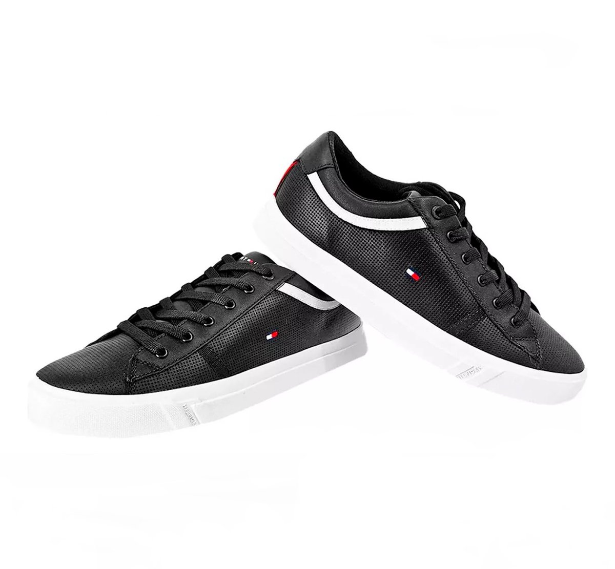 Estes tênis com cadarço têm tudo a ver com a marca Tommy Hilfiger, com seus toques característicos visíveis de todos os ângulos.