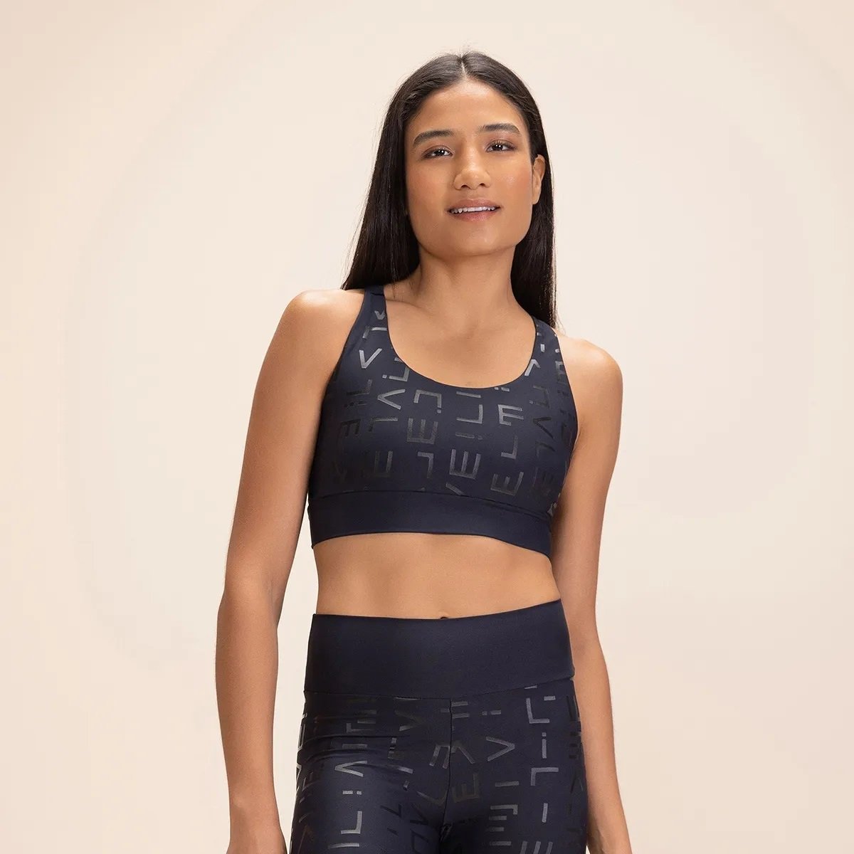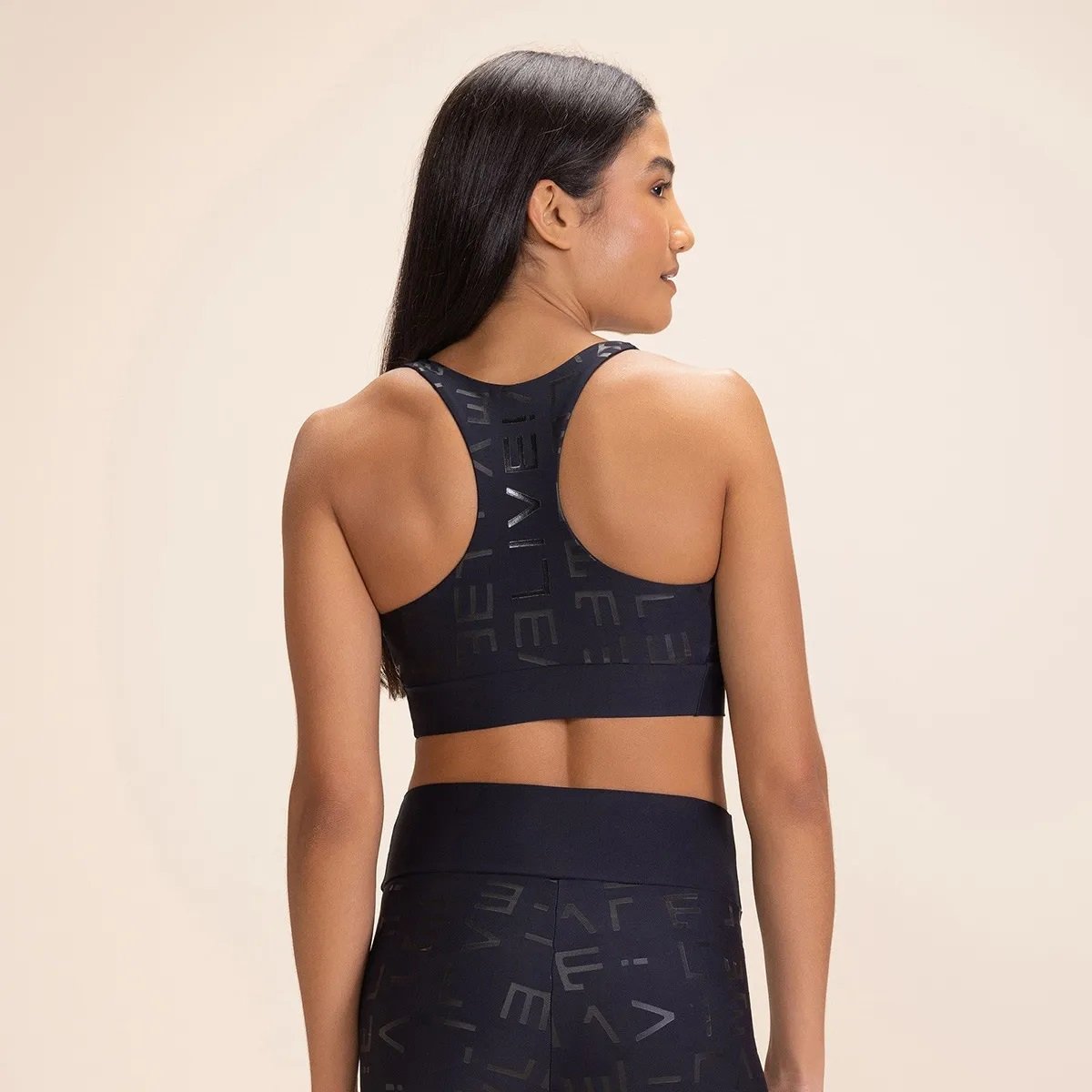 O Top Icon Hydefit Adaptiv Preto é uma peça indispensável para treinos de médio impacto e atividades do dia a dia.