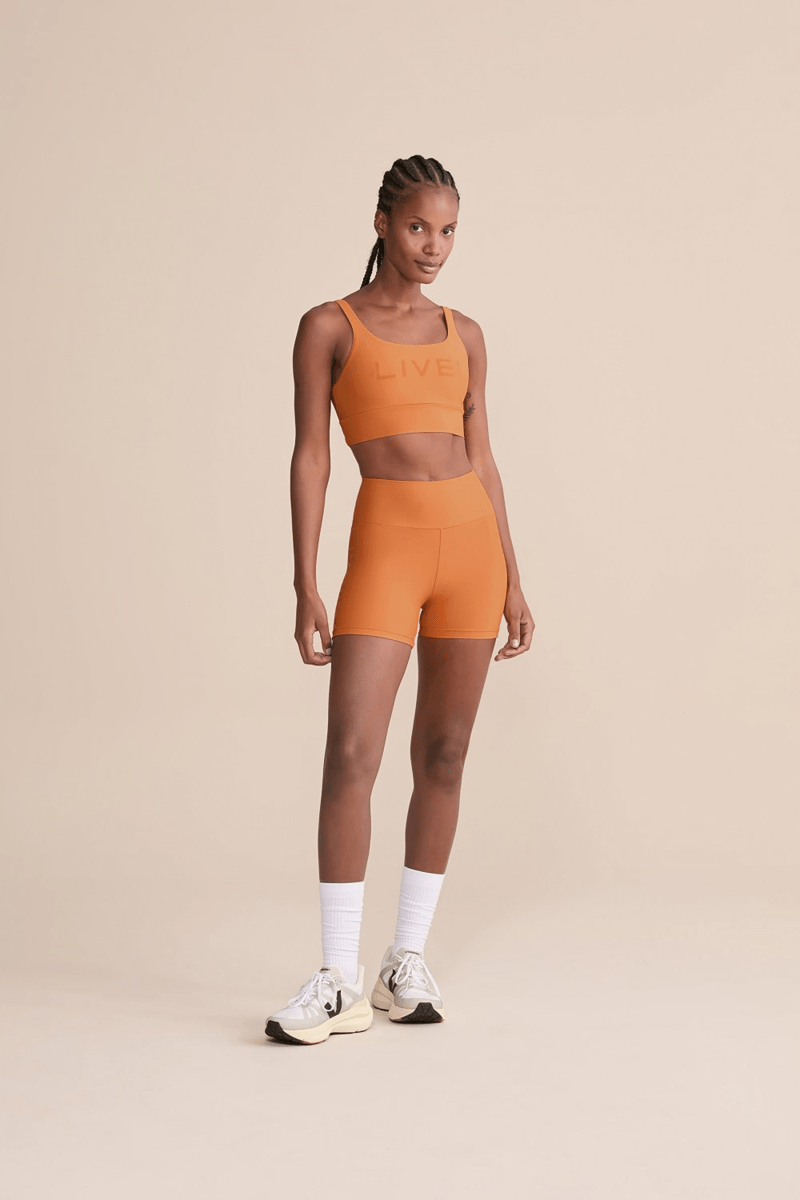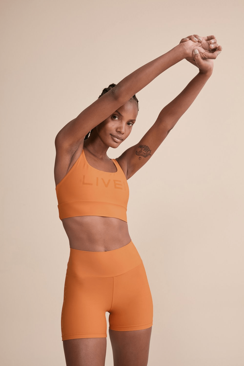 O Top Live Icon Laranja é ideal para mulheres que buscam sustentação firme, liberdade de movimento e visual marcante durante a prática esportiva.