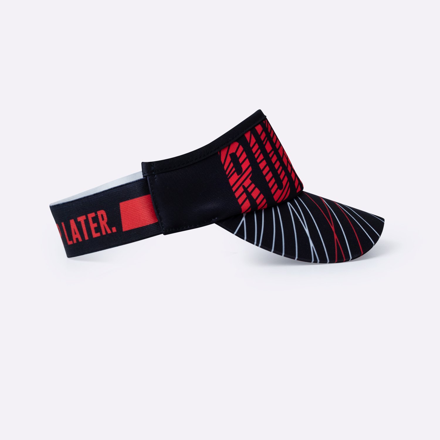A faixa de sustentação da viseira é ajustável e veste muito bem, sem qualquer peça de plástico ou metal que possa causar desconforto. Fabricada em poliéster também é projetada para não reter suor, mas promover sustentação sem incômodo. A parte interna da faixa, na região da aba possui um tecido aveludado, evitando que o suor escorra em direção aos olhos.